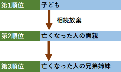 相続放棄をすると、相続権がほかの相続人に移ることも知っておく必要があります。相続では相続順位が法律で決まっており、順位の高い相続人が放棄すると次の順位に権利が移っていきます。
