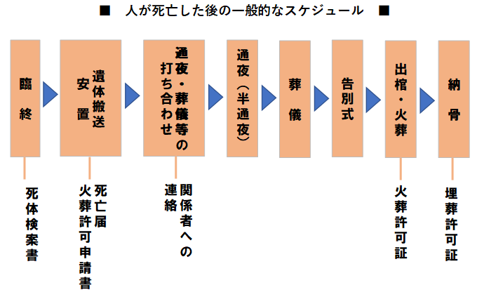人が死亡した直後は、通夜や葬儀などの準備・手配や、親類や関係者への連絡などに加えて、様々な届け出や手続きをしなければなりません。届け出や手続きの中には、期限が定められているものがありますので、とくに期限が短いものから順番に行うようにしましょう。
