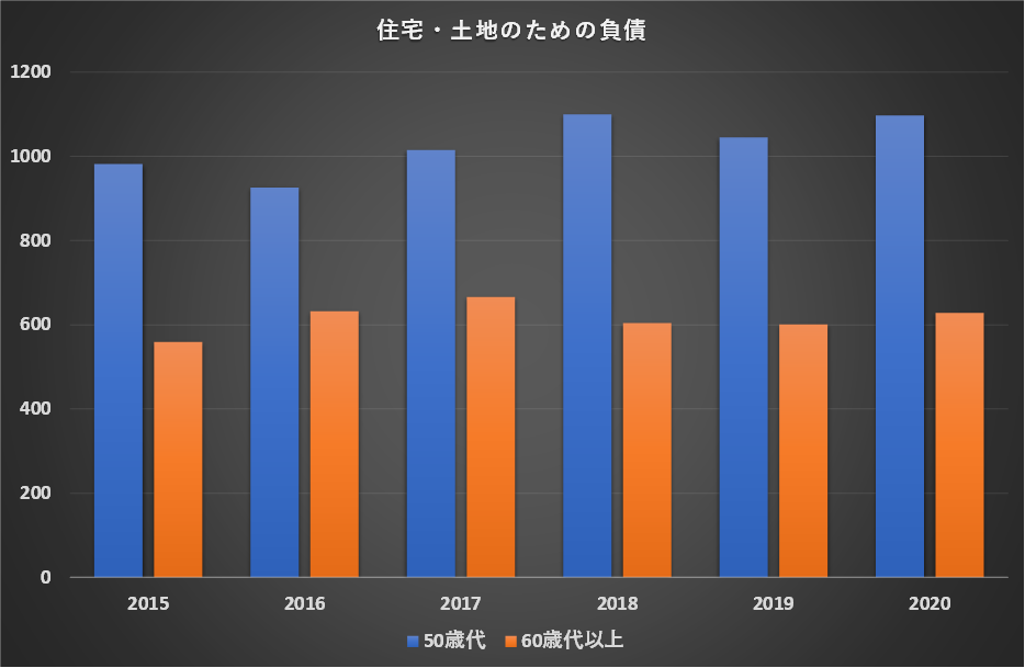 住宅ローンで50代、60代の負担は増しています。総務省の家計調査で住宅・土地関連の負債額(負債のある2人以上世帯の平均)をみると、50代は2019年で1045万円と3年連続で1000万円代になり、60代は706万円と10年前に比べ約12%増えました。従来から借りている人に加え、超低金利政策で住宅ローン金利が大幅に低下し、比較的高齢でもローンを借りやすいと考えた人がいることから負債額が増えたようです。
