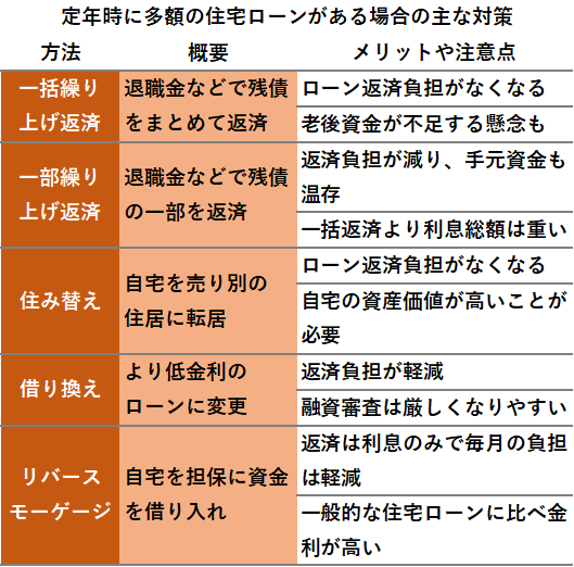 こうした対策は一長一短があり、自分の事情に合わせて早めに検討する必要があります。定年後も長く働いて収入を増やしたり、ローン返済以外の支出を見直したりするなどして家計の改善に取り組むことも必要になりそうです。