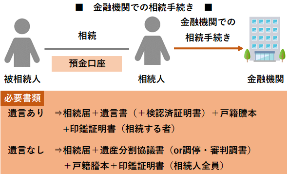 故人(被相続人)が遺した相続財産に、銀行など金融機関の預金口座(ゆうちょ銀行などは貯金口座)が含まれている場合には、相続人同士による遺産分割の手続き以外にも、金融機関における手続きを済ませなければ、相続人は故人の預金を引き出すことができません。必要な手続きを把握しておくことが必要です。