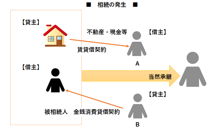 たとえば、被相続人がAに建物を貸していた場合、建物の貸主という地位が相続人に承継されるため、相続人が被相続人に代わり、Aに建物を貸し続けなければなりません。また、被相続人がBから借金をしていた場合は、借主の地位が相続人に承継されるため、相続人は被相続人に代わり、借金を返さなければなりません。