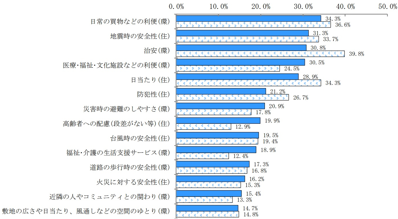 (出典:国土交通省/平成30年住生活総合調査/高齢者世帯(単身・夫婦)が考える住宅及び居住環境に関して重要と思う項目)