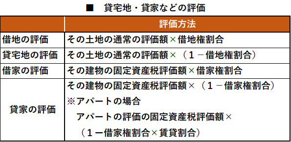反対に、他人に貸している土地を相続するケースもあります。それが借地権の設定されている土地(貸宅地や貸地)である場合、借地権の権利が保護されており、貸主はその土地を勝手に処分することはできないため、土地の通常の評価より価値が下がると考えます。貸宅地の評価額は、通常の土地の評価額から、借地人の持っている権利分を金額を差し引きます。