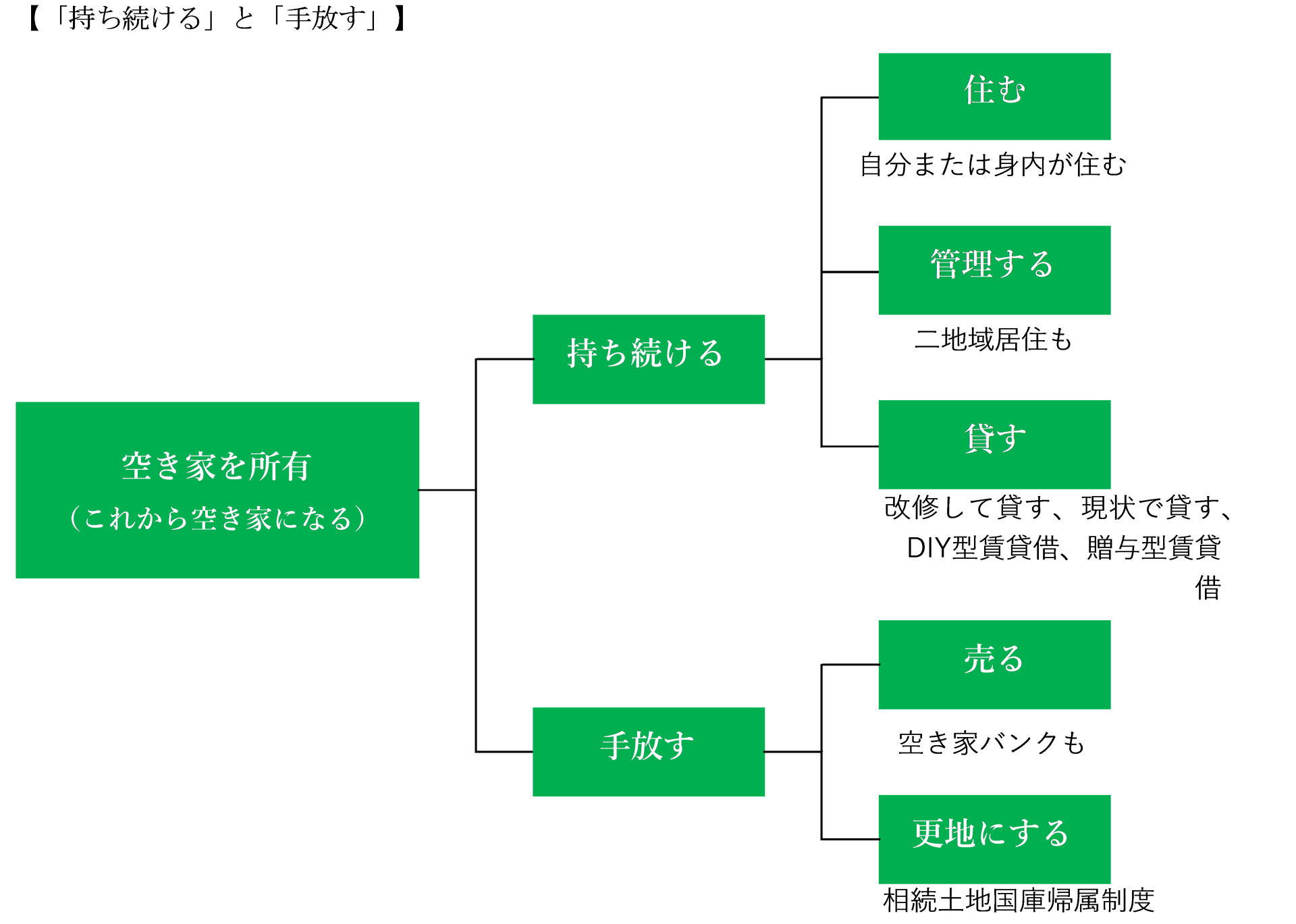 空き家を持ち続けることにした場合、①自分・身内が住む、②管理する、③賃貸する、④活用する、の大きく 4 つの方法があります。
