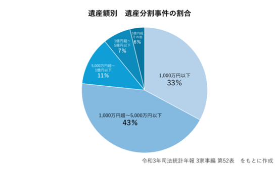 相続は富裕層だけの問題ではありません。実は、遺産分割協議で解決できず、家庭裁判所に遺産分割調停の申し立てをしている家庭の7割が相続財産5000万円以下、もっというと3割が相続遺産1000万円以下です。誰もが争の危険性を抱えているといえます。