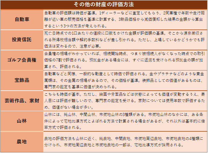 実際の相続財産の評価ですが、財産の種類によって細かく規定されています。