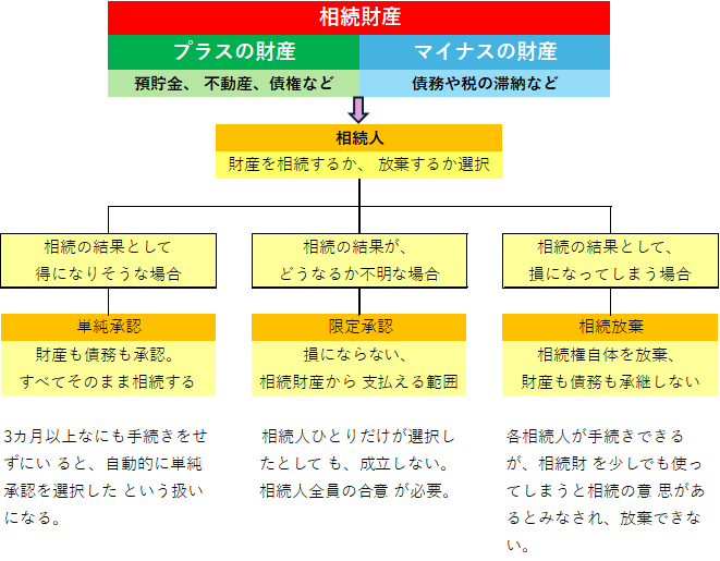 債務や不動産など、すべての相続財産のトータルがプラスになる場合とマイナスになる場合を考えて相続財産の承認には3つの方法が用意されています。