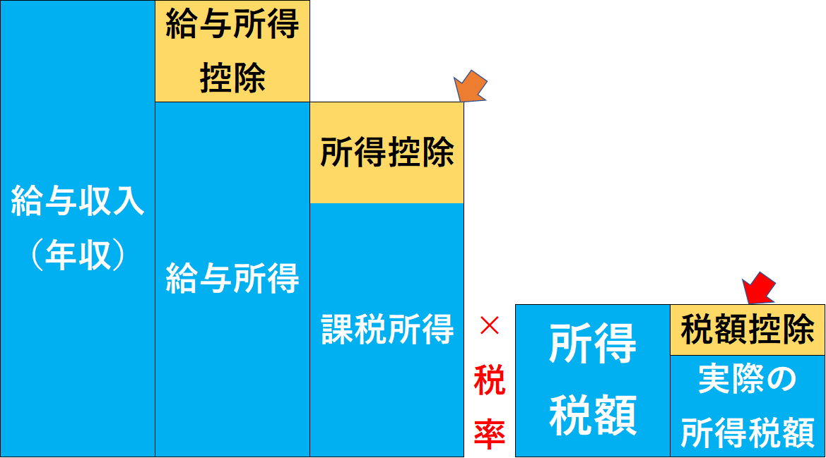 ここで、重要な「キーワード」をご紹介します。それは、「所得控除」と「税額控除」です。共に所得税は安くなりますが、そのインパクトが違うのです。