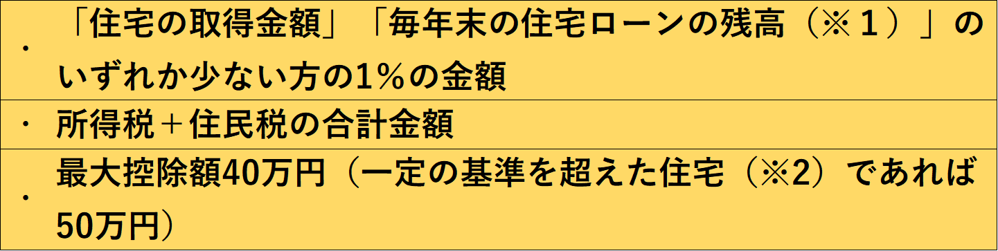 ※1.住宅を購入する上で発生した不動産の仲介手数料や不動産取得税等、「住宅の取得対価」と認められないものがあるので、借り入れ方によっては、「住宅ローンの残高」がそのまま対象にならない場合もあります。