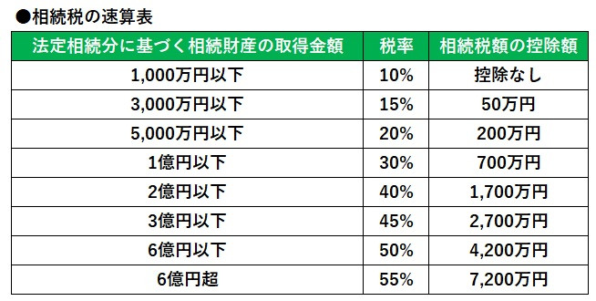 速算表は国税庁のホームページなどで確認することもできます。たとえば、特定の相続人の取得分が1,000万円以下の場合、税率は10%です。